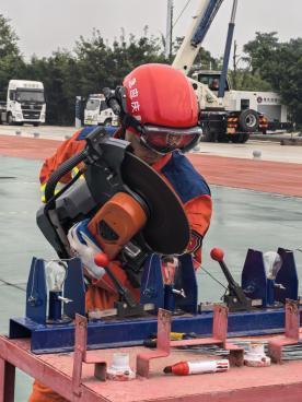 重庆市专业应急救援总队应急救援队员开展切割作业训练。